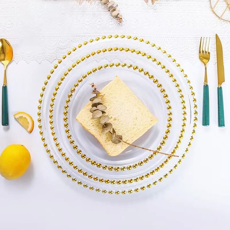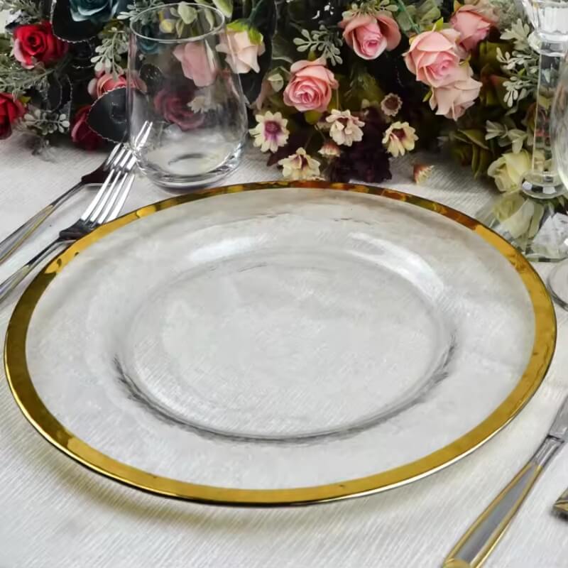 This glass plate is crafted from carefully selected high-quality glass, melted, formed, and annealed at high temperatures to ensure its crystal-clear, durable, and shatter-resistant properties. Its sleek lines and smooth, rounded edges create a delicate feel, combining practicality with aesthetic appeal. We offer a variety of decorative options, including electroplating, spray painting, bordering, and gold foiling, to create a variety of stylish effects. Whether it’s a simple and elegant transparent texture or a luxurious and elegant metallic sheen, we can meet diverse market demands. Glass plates are not only suitable for everyday tableware but are also ideal for wedding banquets, hotels, restaurants, and home decoration. They can also be used as gift plates or display trays to enhance the style and elegance of any space. Available in a variety of shapes and sizes, including round, square, and custom shapes, they fully meet customer needs.