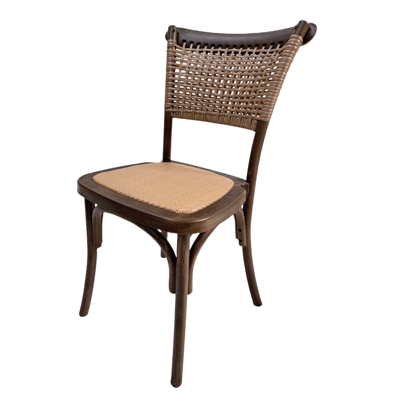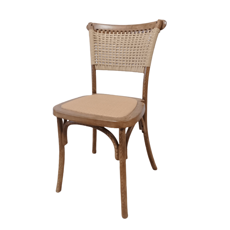 Experienced craftsmen evenly weave the flexible rattan into the resin crossback chair frame, maintaining just