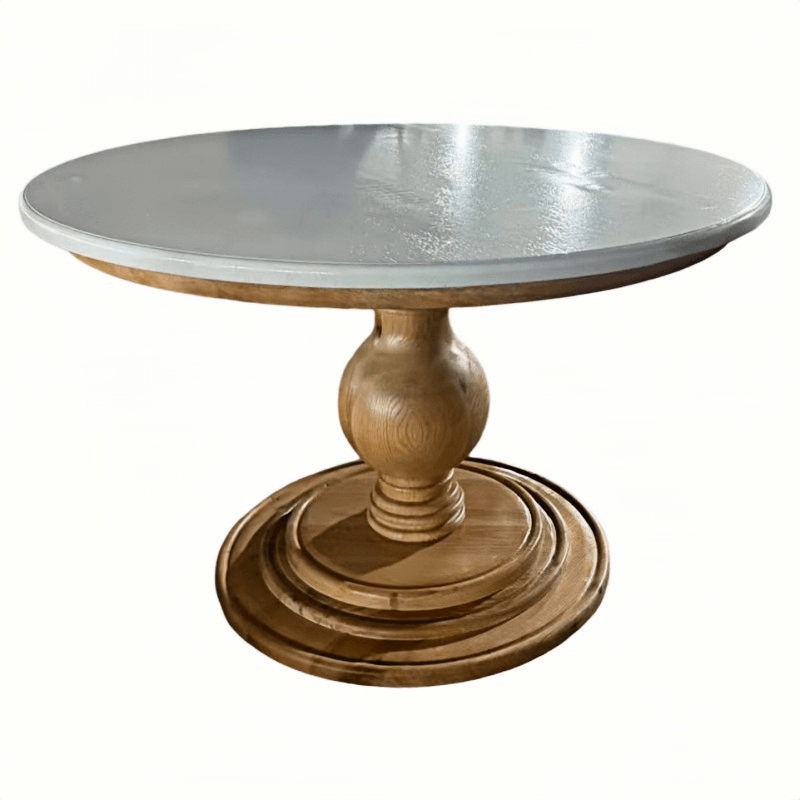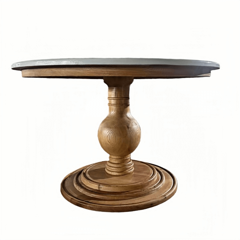 This solid wood round base table is designed for weddings and special events, creating a classic and elegant atmosphere. The tabletop is crafted from thick solid wood, while the base features exquisite turned detailing, combining both beauty and stability. The table’s natural wood grain adds a warm texture, making it ideal for wedding receptions, welcome areas, cake displays, and cocktail parties.