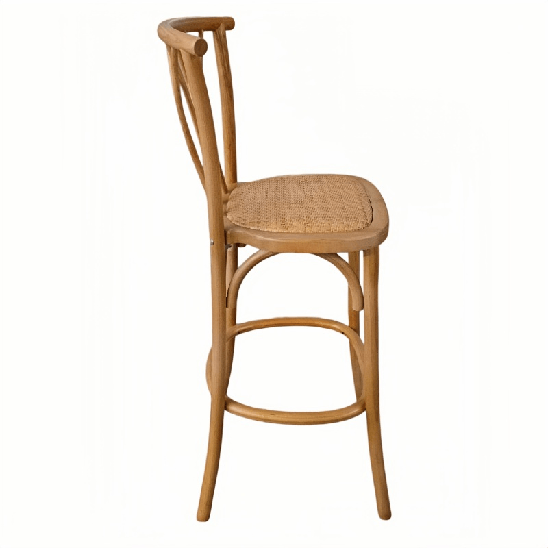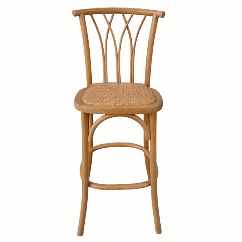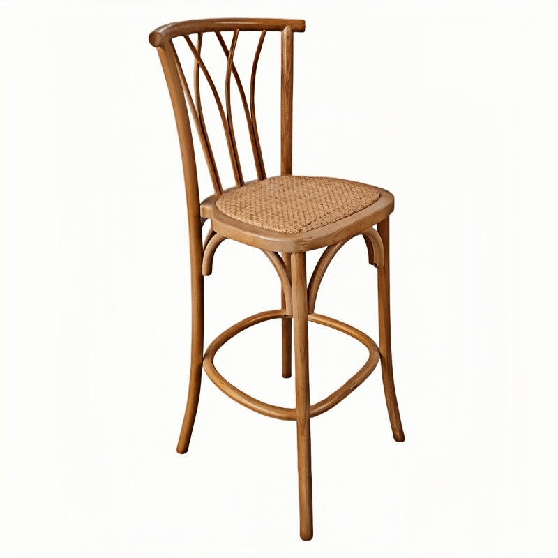 The Willow Bar Stool offers a commercial seating solution that seamlessly blends practicality with style. Crafted with a bent solid wood frame, it boasts a robust and reliable structure while maintaining a lightweight profile that facilitates easy handling and maintenance in daily operations. The hand-woven wicker seat and backrest not only provide a natural sense of comfort but also offer excellent breathability, ensuring a pleasant seating experience even during prolonged periods of use. Thanks to its clean and versatile design, the Willow Bar Stool integrates perfectly into bars, cafes, restaurants, and various event venues, helping you effortlessly create a polished and professional spatial aesthetic.