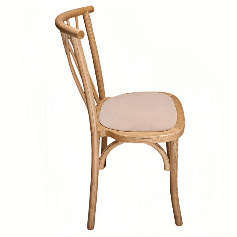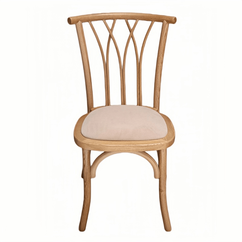 This willow chair, featuring a flame-retardant cushion, seamlessly blends natural elegance with enhanced safety performance, making it an ideal choice for weddings, banquets, restaurants, and various event venues. Crafted with a finely woven wicker frame, the chair boasts a structure that is both lightweight and remarkably durable—facilitating easy handling, stacking, and transport. The cushion is constructed from high-quality, flame-retardant materials; while providing an added layer of safety, it retains a soft, comfortable texture, ensuring a pleasant seating experience even during prolonged use. The chair’s breathable woven design not only enhances seating comfort but also accentuates the inherent natural aesthetic appeal of the piece itself.